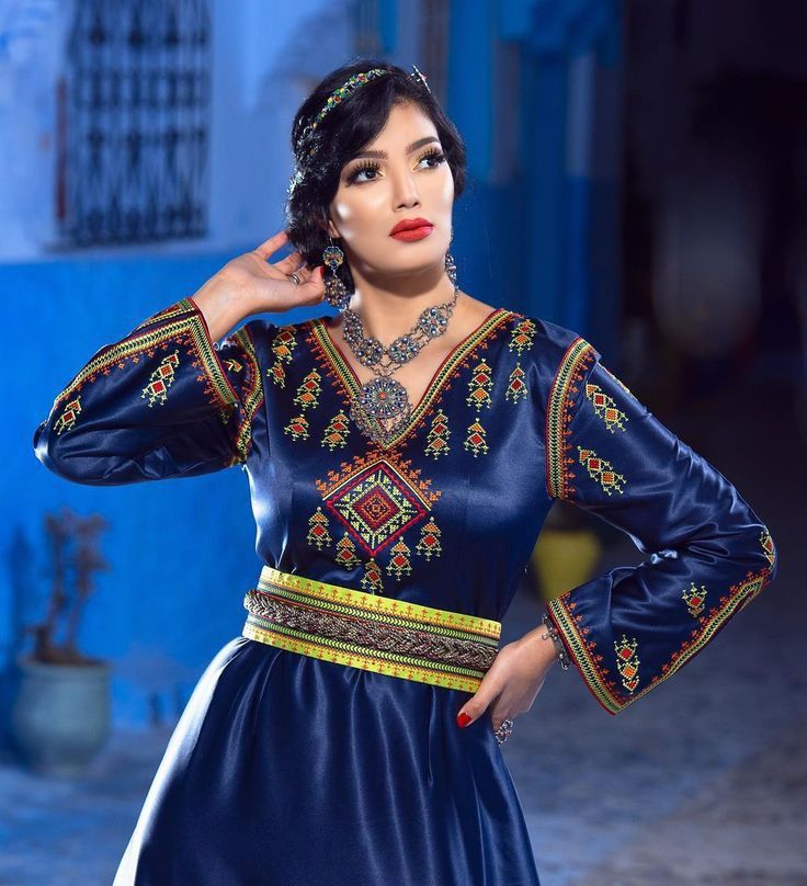La robe kabyle se distingue par son esthétique hautement colorée et géométrique. Les tissus de base peuvent être de coton imprimé (fleurs multicolores) ou de soie fine, mais les ornements dominants restent vifs (jaune, rouge, vert). Le rouge pour la passion, le jaune pour la fertilité, le vert pour la terre, le bleu pour le ciel. Rien n’est laissé au hasard.
