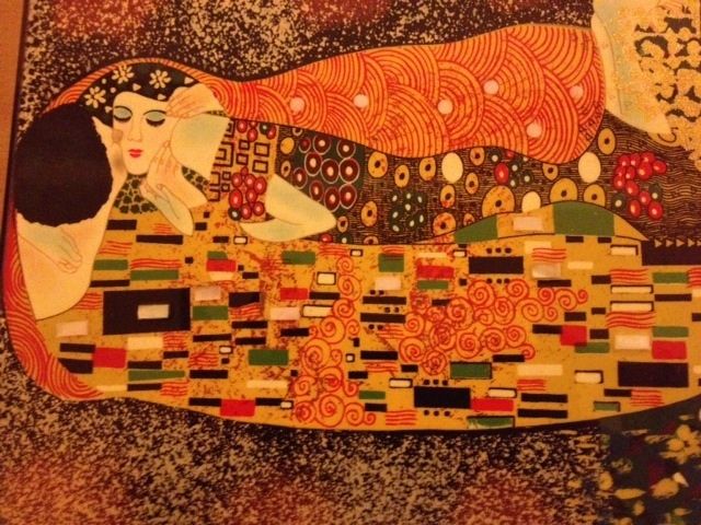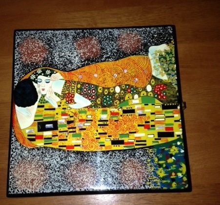 Alors voilà ma petite participation. Le coffret qui appartient a la famille vient du Vietnam, dessus il y a reproduit avec du nacre un magnifique tableau qui s'appelle 'le baiser éternel'. Il a été fait par un artisan comme les tiens.