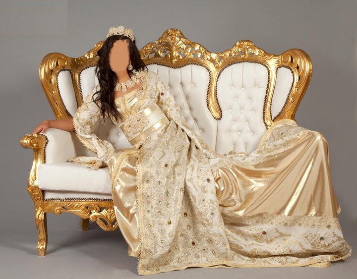 Je cherche depuis tout à l'heure mais je n'arrive pas à trouver de photo qui explique ce à quoi je pense dans ma tête, mais c une robe de mariée travaillée sous forme de caftan, un truc entre les 2 quoi