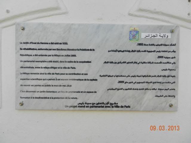 Je ne sais si vous faire un zoom mais il y a écrit sur la plaque qui se trouve à l’entrée que le jardin a été crée en 1832, soit 2 ans après l’arrivée des français. Ça donneà réfléchir. Ce jardin est pour moi un joyau, pourvu qu’on en prenne soin.