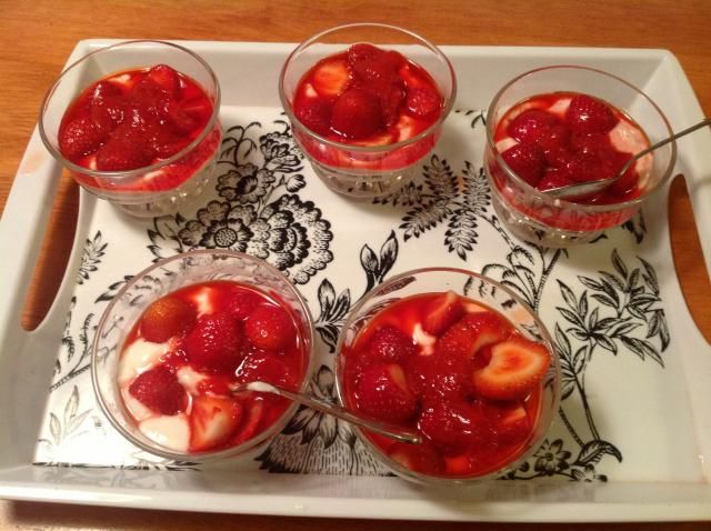 En dessert ma petite creation toute simple : naturelle aux fraises (1 yogourt + fraises et coulis de fraise maison)