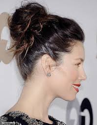 une longue robe noire simple comme coiffure inchalah un chignon dans ce style